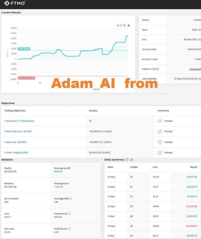 Link download ADAM for FTMO 4 EA V5.25 MT4 will be sent to your email after payment.