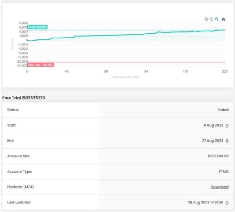 Alpha Striker EA MT4 is a sophisticated automated trading system designed specifically for the MetaTrader 4 platform. Utilizing a robust algorithm, it caters to traders of all skill levels by providing trade signals for optimal entry points and analyzing Forex market data. Its notable performance in the FTMO Challenge highlights its effectiveness in overcoming trading challenges and delivering consistent results.