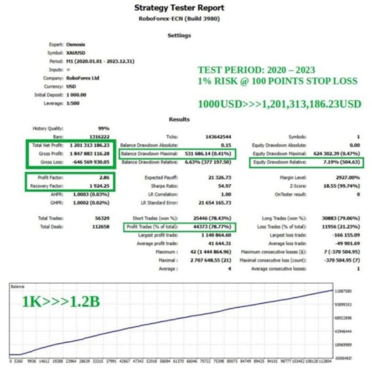 - Advanced Algorithm Utilization: Osmosis EA leverages a sophisticated dynamic price differential algorithm and market volume analysis to trade XAUUSD retracements effectively.