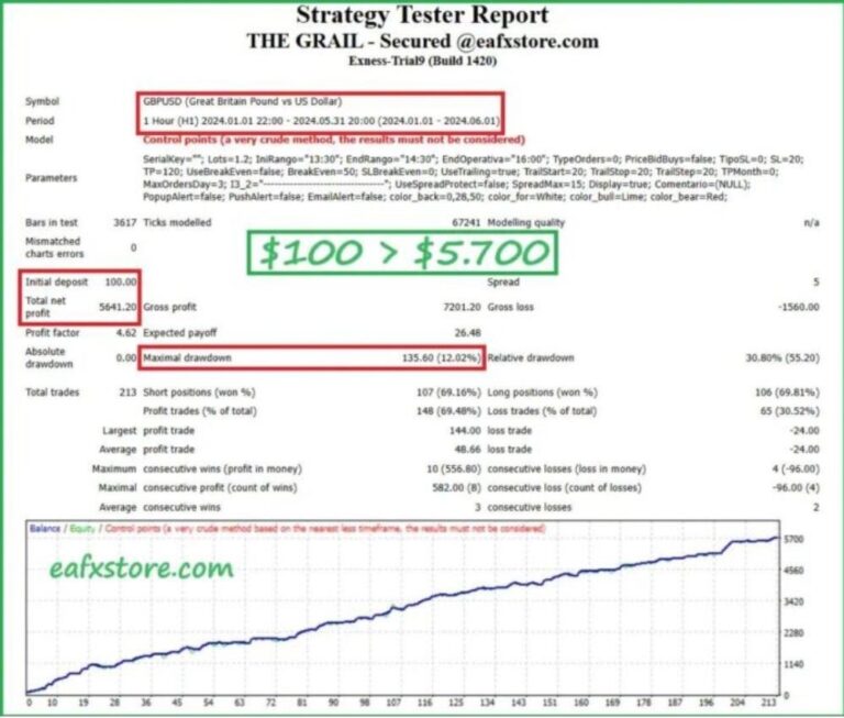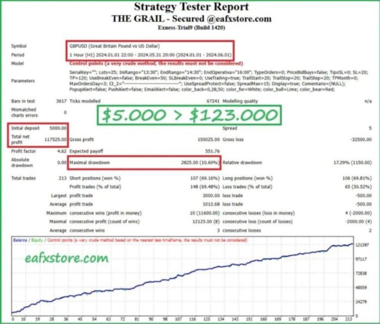 The Grail Funding Crusher EA is an Expert Advisor designed to assist forex traders in passing prop firm challenges and managing live accounts with minimal drawdown. Operating on the MetaTrader 5 (MT5) platform, it leverages modern technologies to optimize trading performance and effectively tackle the challenges posed by global prop firm companies.